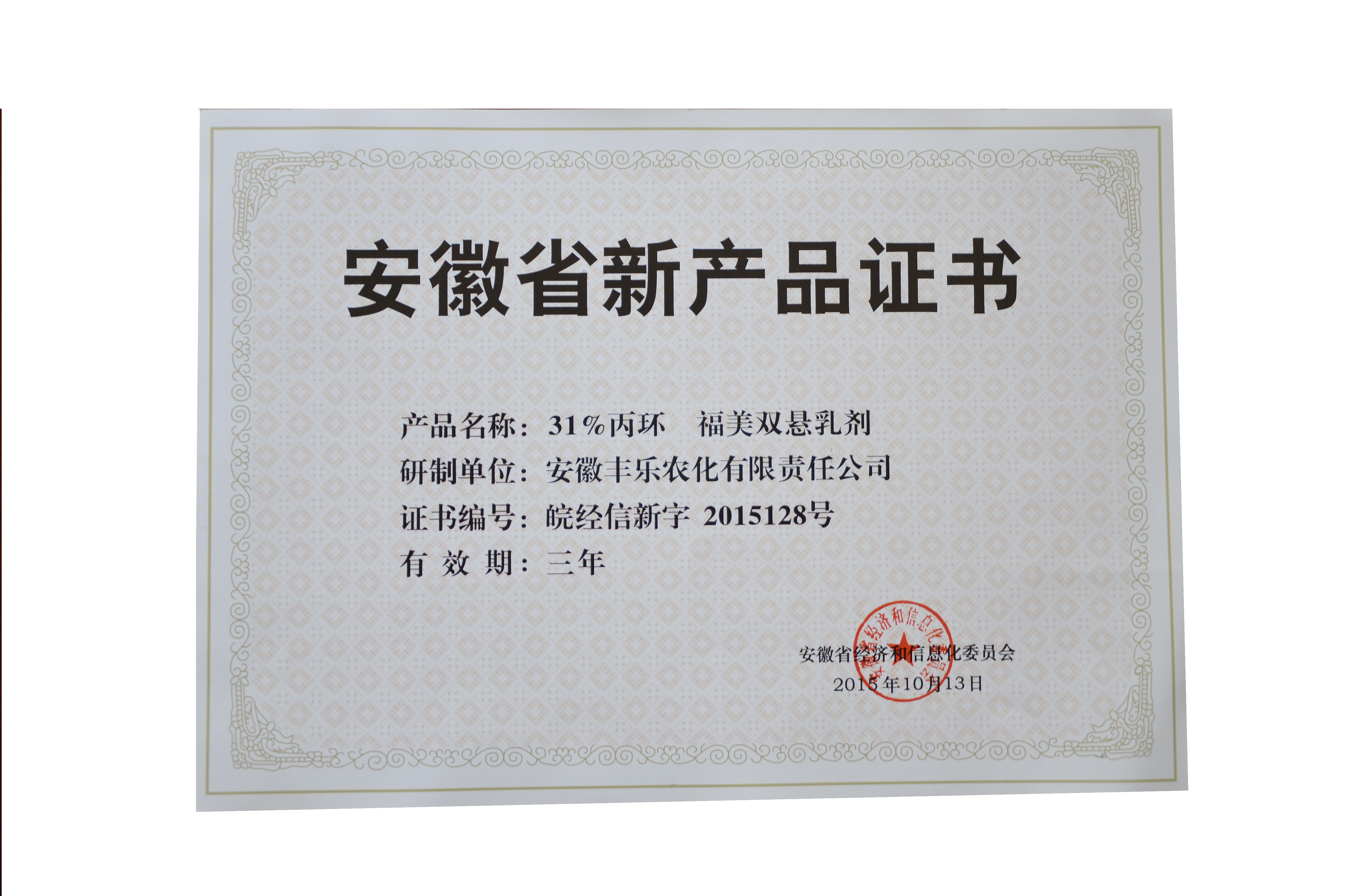 安徽省新产品-31%丙环唑·福美双悬乳剂(证书)