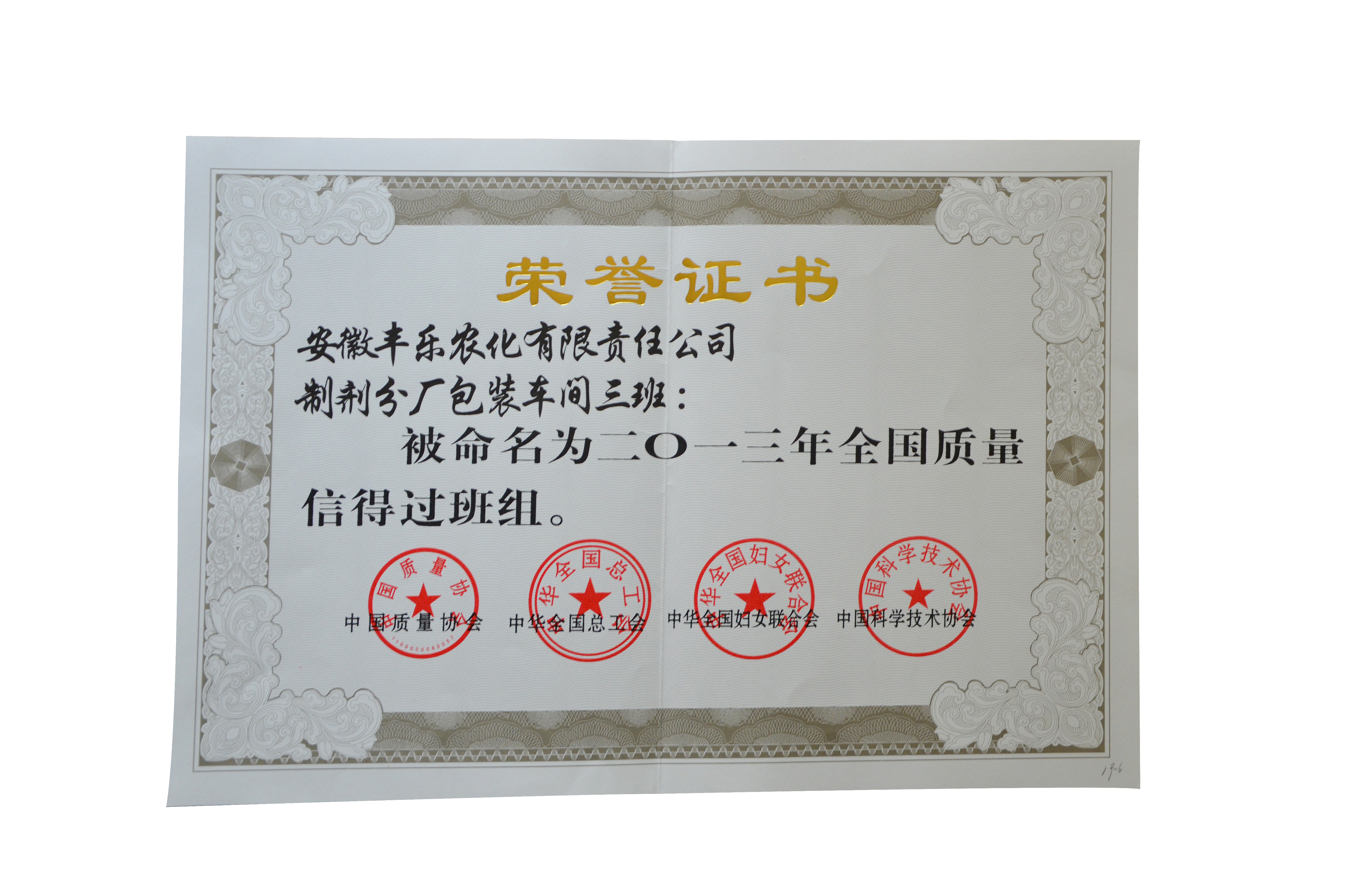 2013年天下质量信得过班组(声誉)